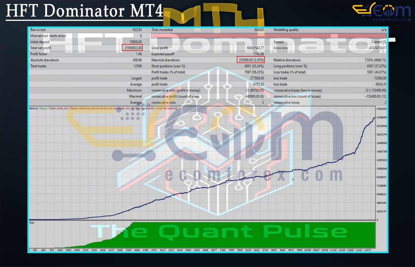 HFT Dominator EA MT4 delivered exceptional profitability in its backtest, showcasing remarkable precision and stability on the M5 timeframe. Despite operating within high-frequency conditions, the system maintained extremely low risk while generating extraordinary long-term returns.