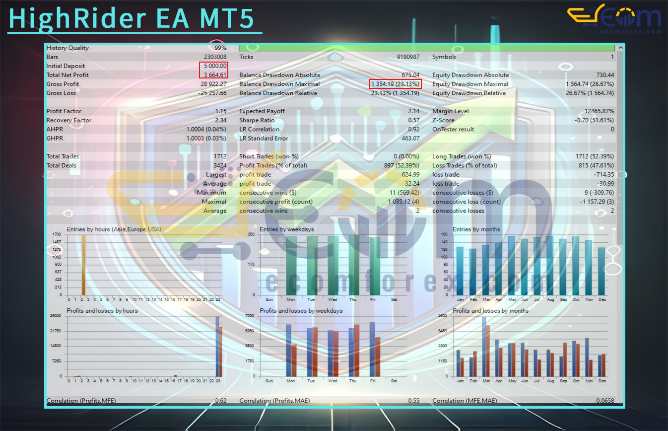 HighRider EA has shown consistent profitability and disciplined execution in long-term backtesting, confirming its ability to maintain steady growth while keeping risks under control. This makes it a promising option for traders who value both profitability and sustainability.