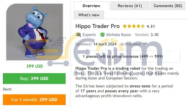 Hippo Trader Pro EA v3.1 MT4 – Original Version (1430+) add SetFiles
