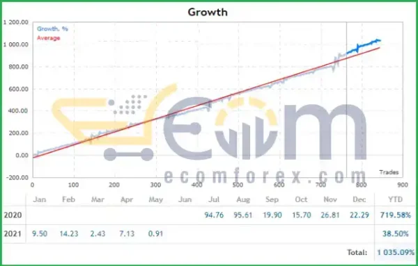 The actual trading performance of Hippo Trader Pro EA over an 11-month period reveals impressive profit potential. The total gain stands at 1035%. This outcome indicates limitless profit possibilities moving forward.