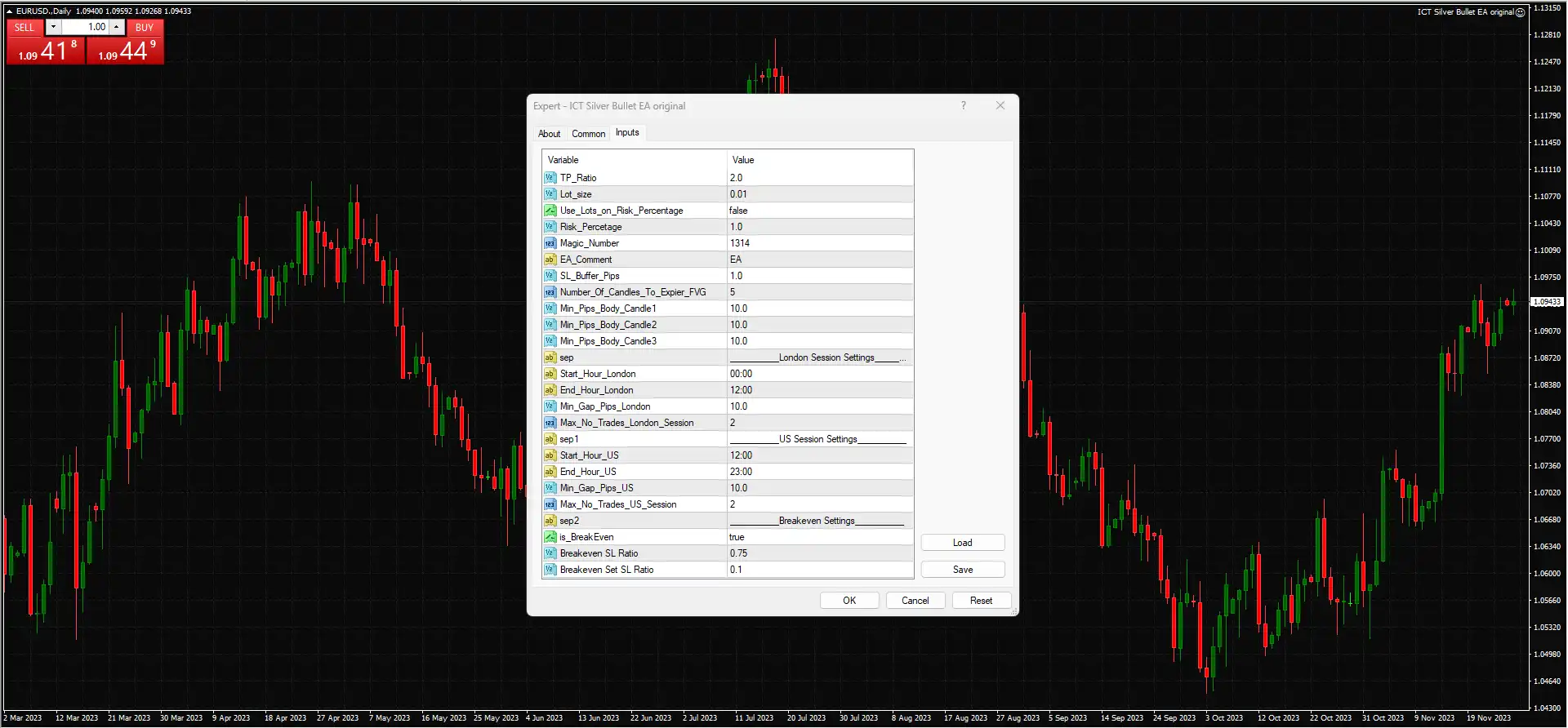The ICT Silver Bullet EA is a fully automated trading system designed for the MT4 platform. It aims to execute a variety of trading techniques rooted in the teachings of the Inner Circle Trader, emphasizing principles such as market structure, liquidity zones, and optimal trade entry and exit strategies.