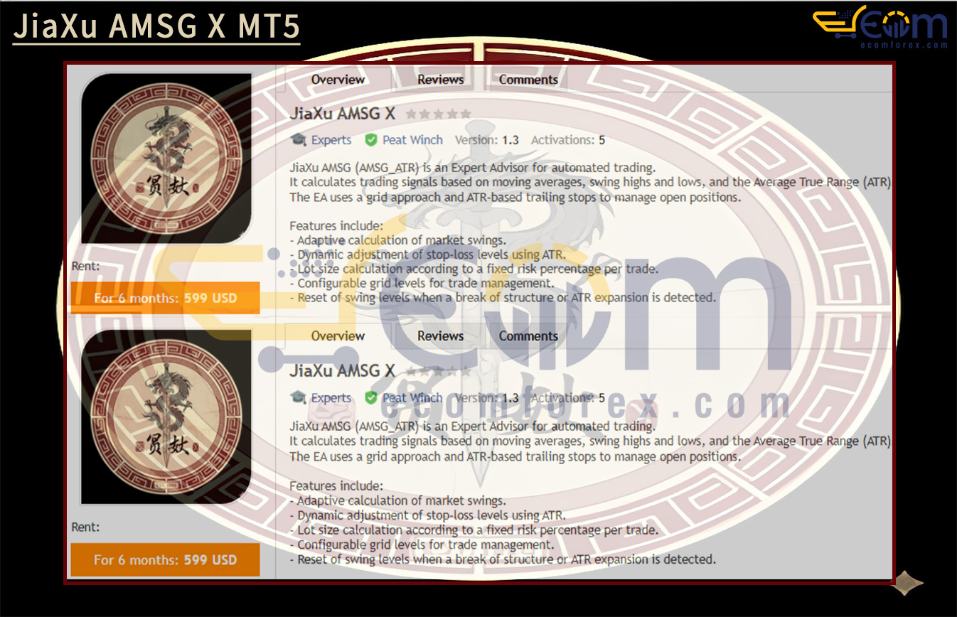 JiaXu AMSG X MT5 – The Intelligent ATR-Powered Grid System for Adaptive Market Precision