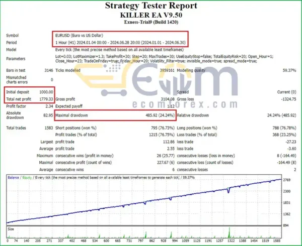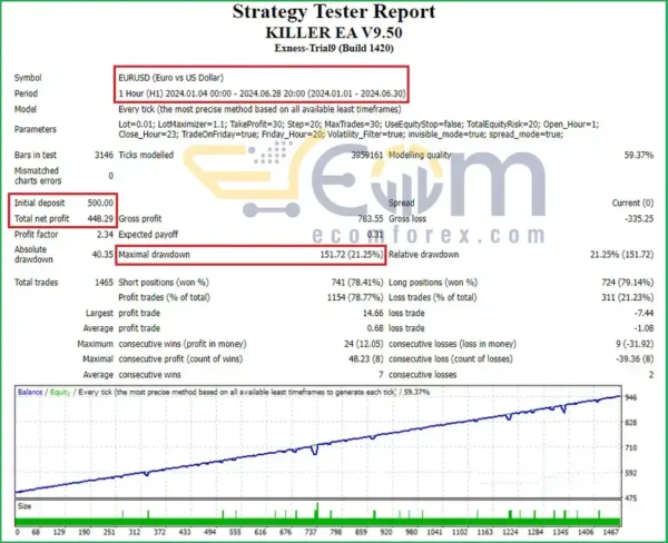 KILLER EA is an Expert Advisor (EA) focused on trading currency pairs and is particularly recommended for EURUSD transactions. The EA has undergone thorough and comprehensive testing and avoids the use of Martingale to ensure the safety of trading accounts.