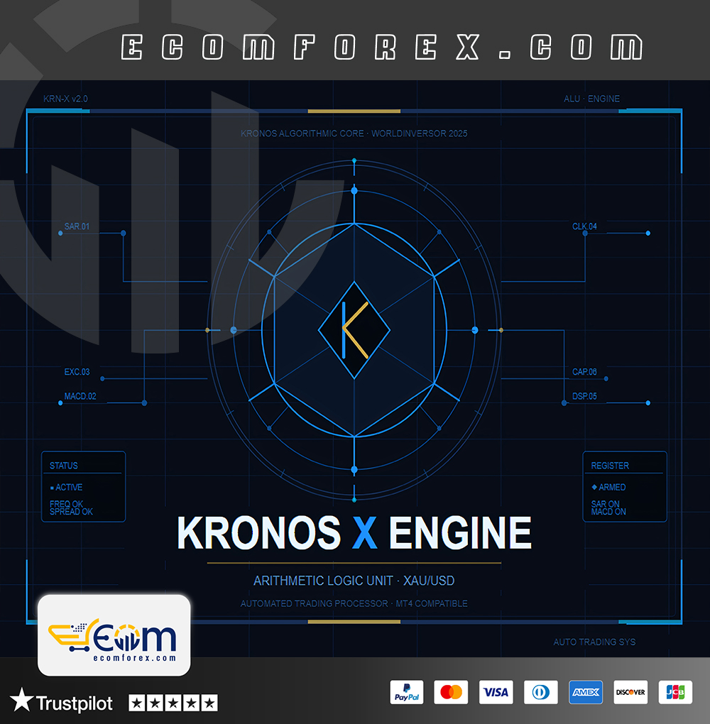 Kronos Engine X EA MT4 operates on a Dual-Confirmation Signal Architecture powered by an internal processing pipeline consisting of six independent modules: CORE REGISTER, CLOCK GATE, FREQUENCY BUS, SAR MODULE, MACD BUS, and EXECUTION CORE.