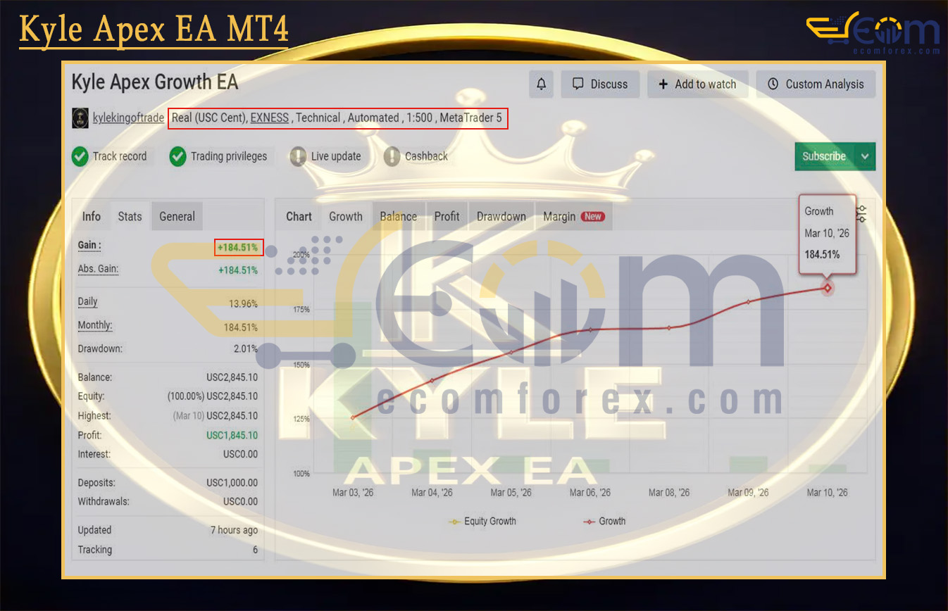 Kyle Apex EA MT4 is a professional-grade MT4Expert Advisor (EA) engineered for disciplined, rule-based automated trading. It employs a structured progression model that combines technical confirmation, time/session filtering, and dynamic position scaling to enter and manage trades with precision and control.
