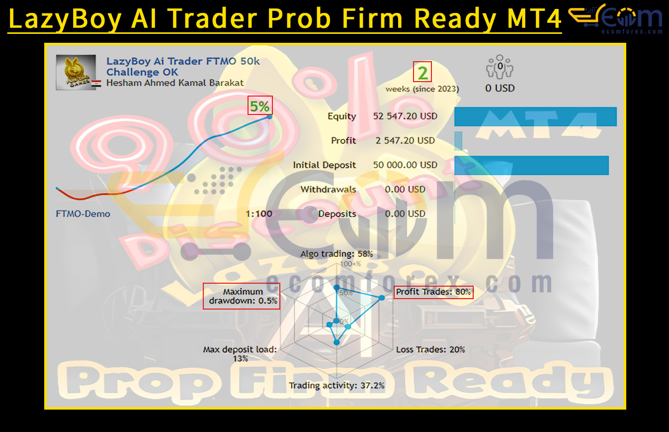 LazyBoy AI Trader Prob Firm Ready MT4 represents a fusion of deep learning, fractal logic, and professional risk management — offering traders a complete automated trading ecosystem that combines stability, intelligence, and precision.
