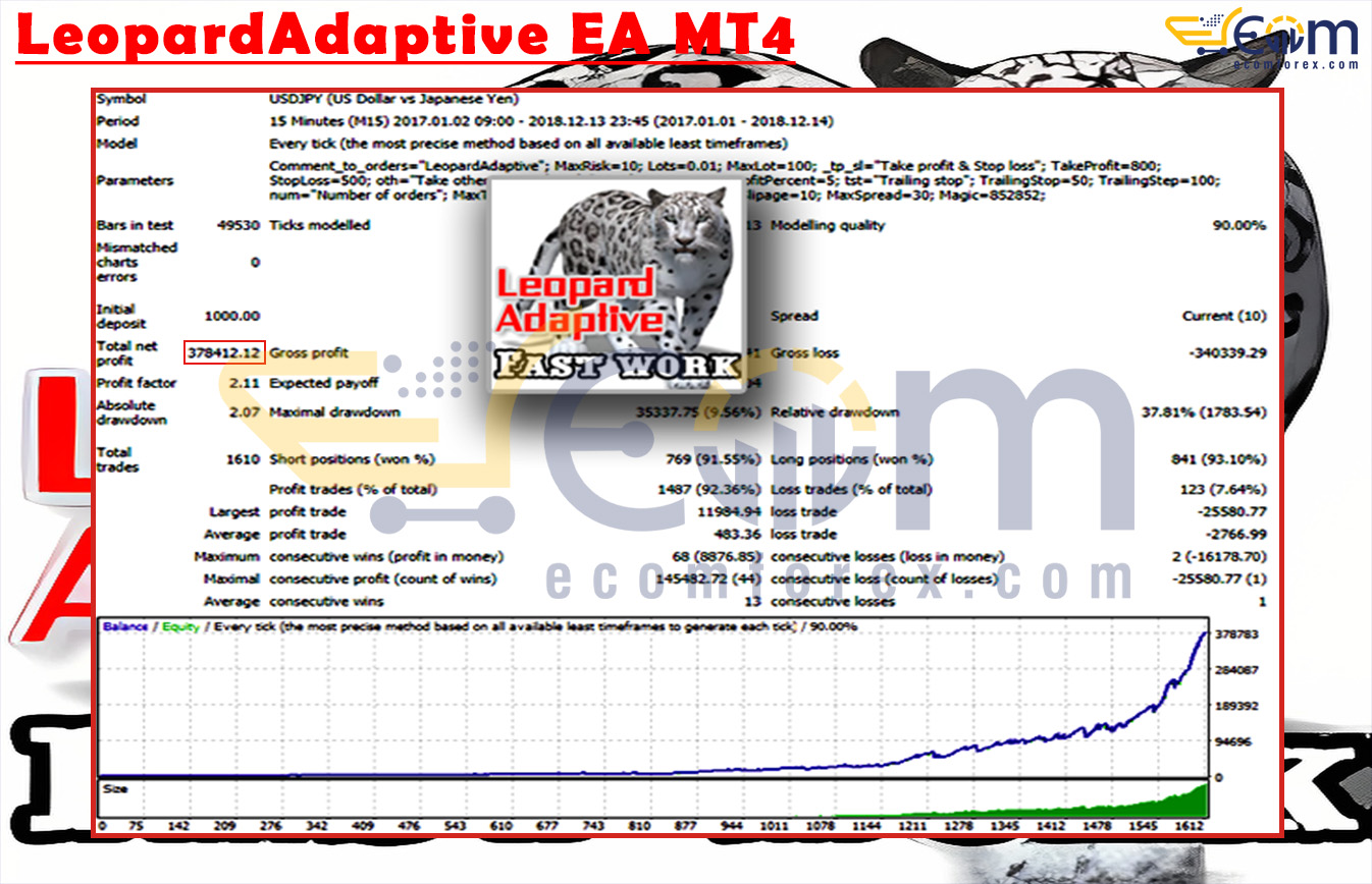 LeopardAdaptive EA MT4 has demonstrated outstanding profitability and smooth long-term growth during its backtesting phase on the USDJPY (M15) timeframe with default settings.