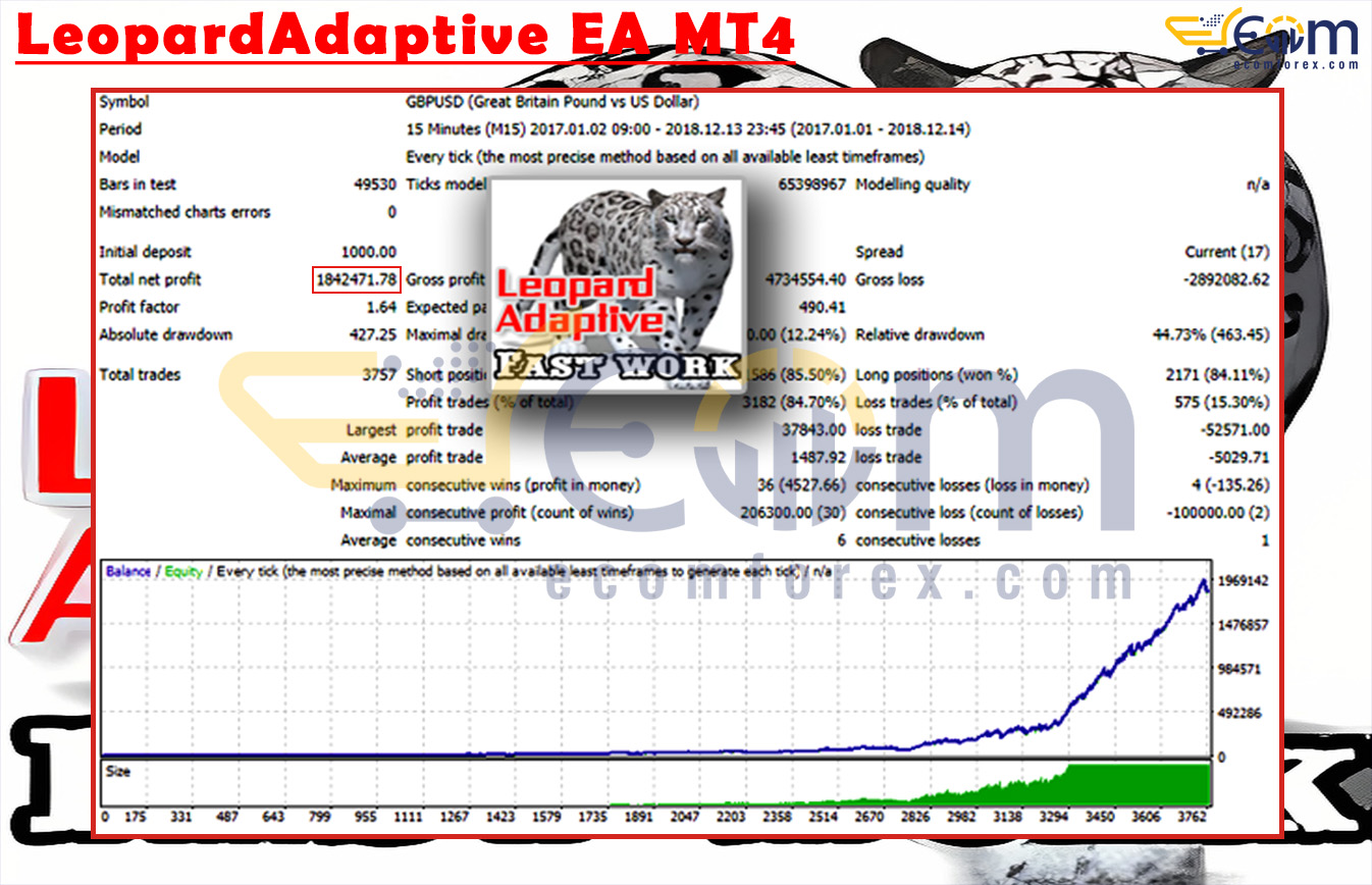 LeopardAdaptive EA MT4 has shown consistent profitability and stable growth throughout its backtesting phase on the EURUSD (M15) timeframe using default settings.