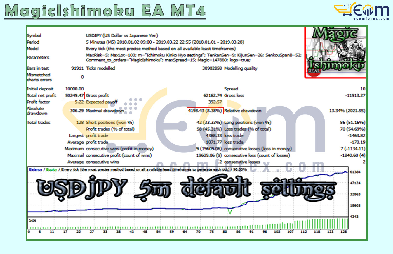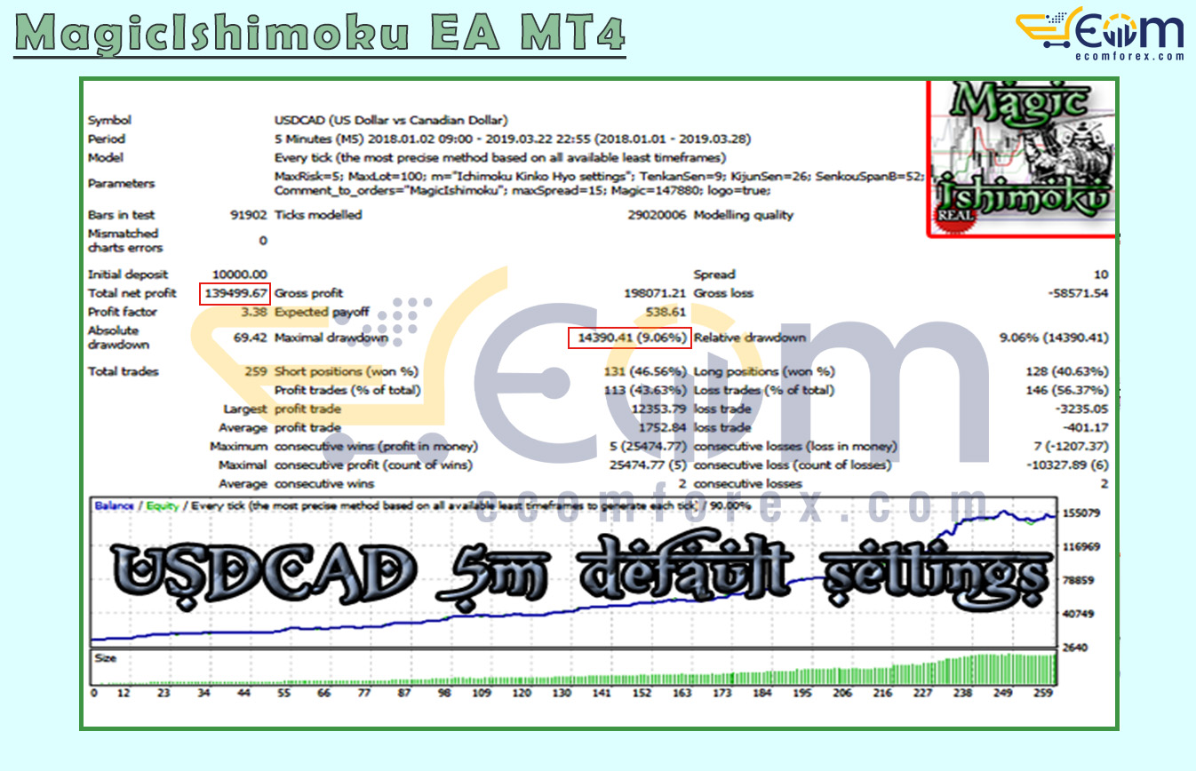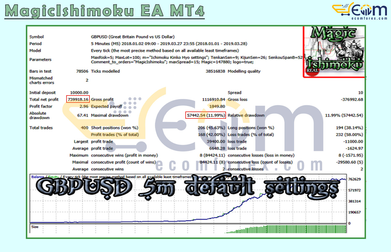 MagicIshimoku EA MT4 has showcased powerful profitability and stable trading performance throughout its backtesting phase, validating its precision in predicting market direction using a multi-layer Ichimoku system based on the Golden Ratio.