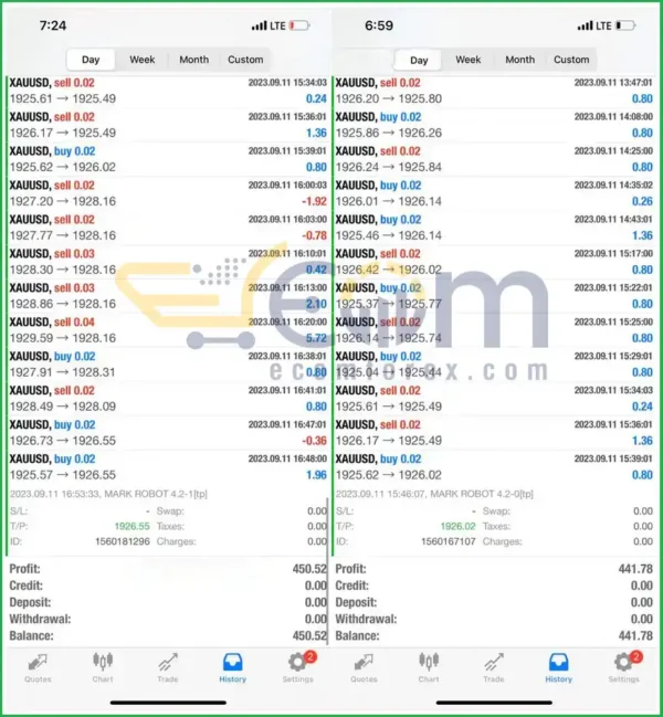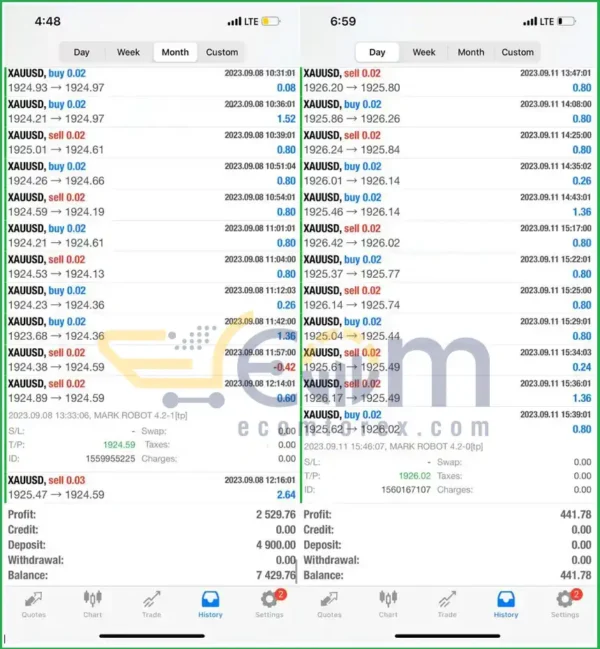 Mark Robot v4.2 genuine trading outcomes in actual transactions demonstrate significant profit potential within the Gold market. It stands out as one of the most efficient Robots currently available in the gold trading arena.