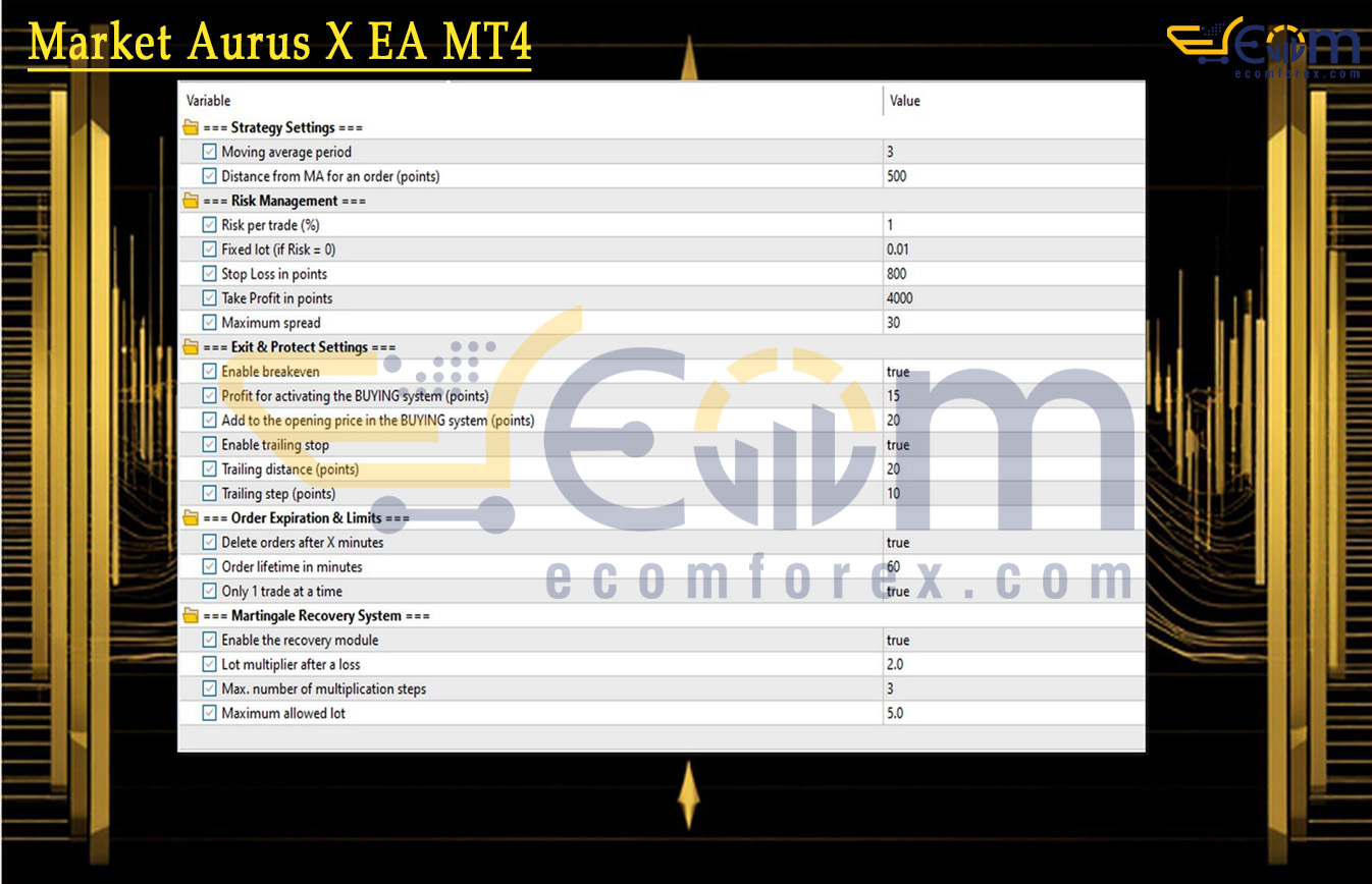 Name: Market Aurus X EA MT4 Version: Latest Version Developer by: Dmitriq Evgenoeviz Ko The Right Platform: Meta Trader 4 (MT4) Our Telegram Team: Join now Our Youtube Channel: Click here