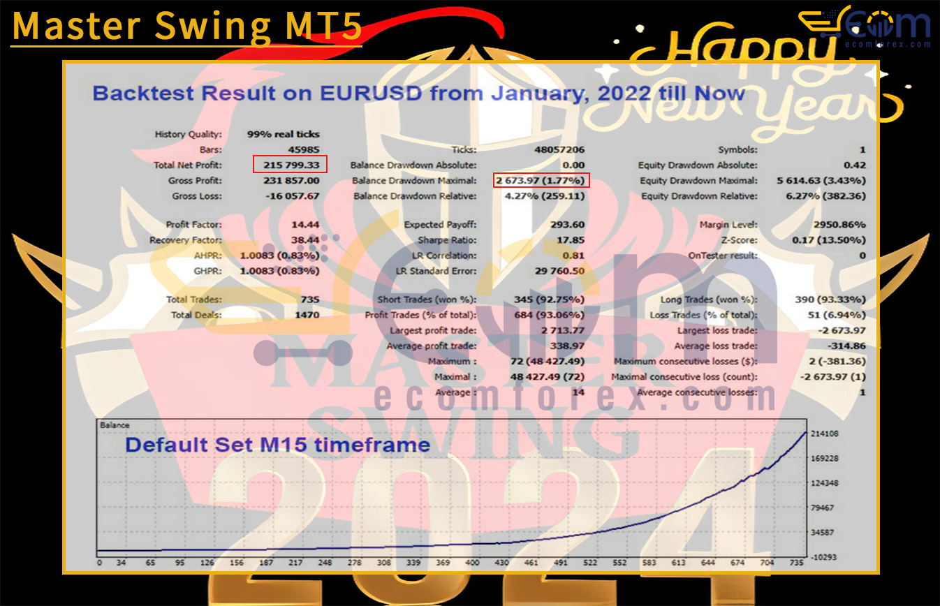 Master Swing MT5 is not just an automated trading tool—it is a complete swing trading solution. It offers the perfect balance between profitability, discipline, and risk control, enabling traders to maximize opportunities in both Forex and Gold for consistent long-term success.
