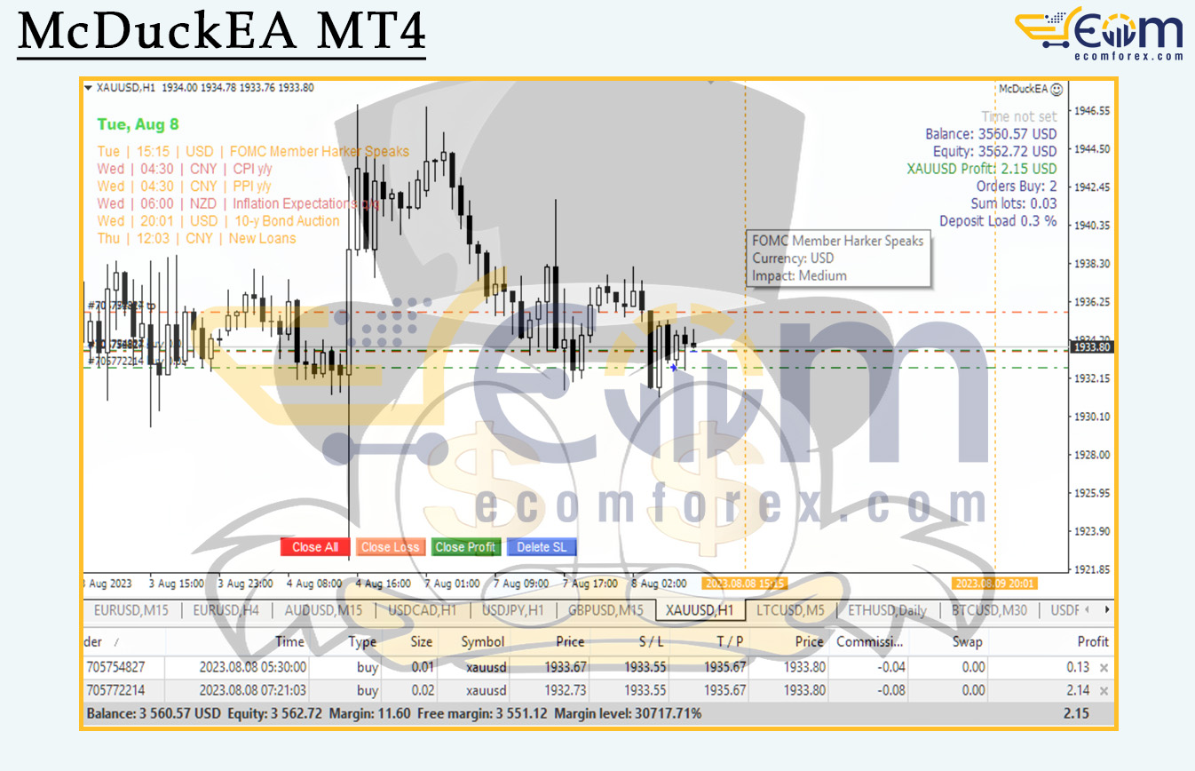 McDuckEA MT4 is a specialized automated trading system engineered exclusively for XAUUSD (Gold), delivering verified real-account profitability. Its live performance has been consistently confirmed across real trading environments, proving the EA’s stability, reliability, and long-term profit potential.