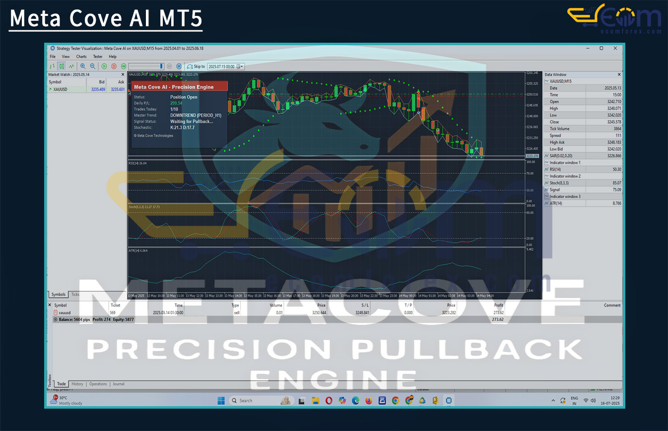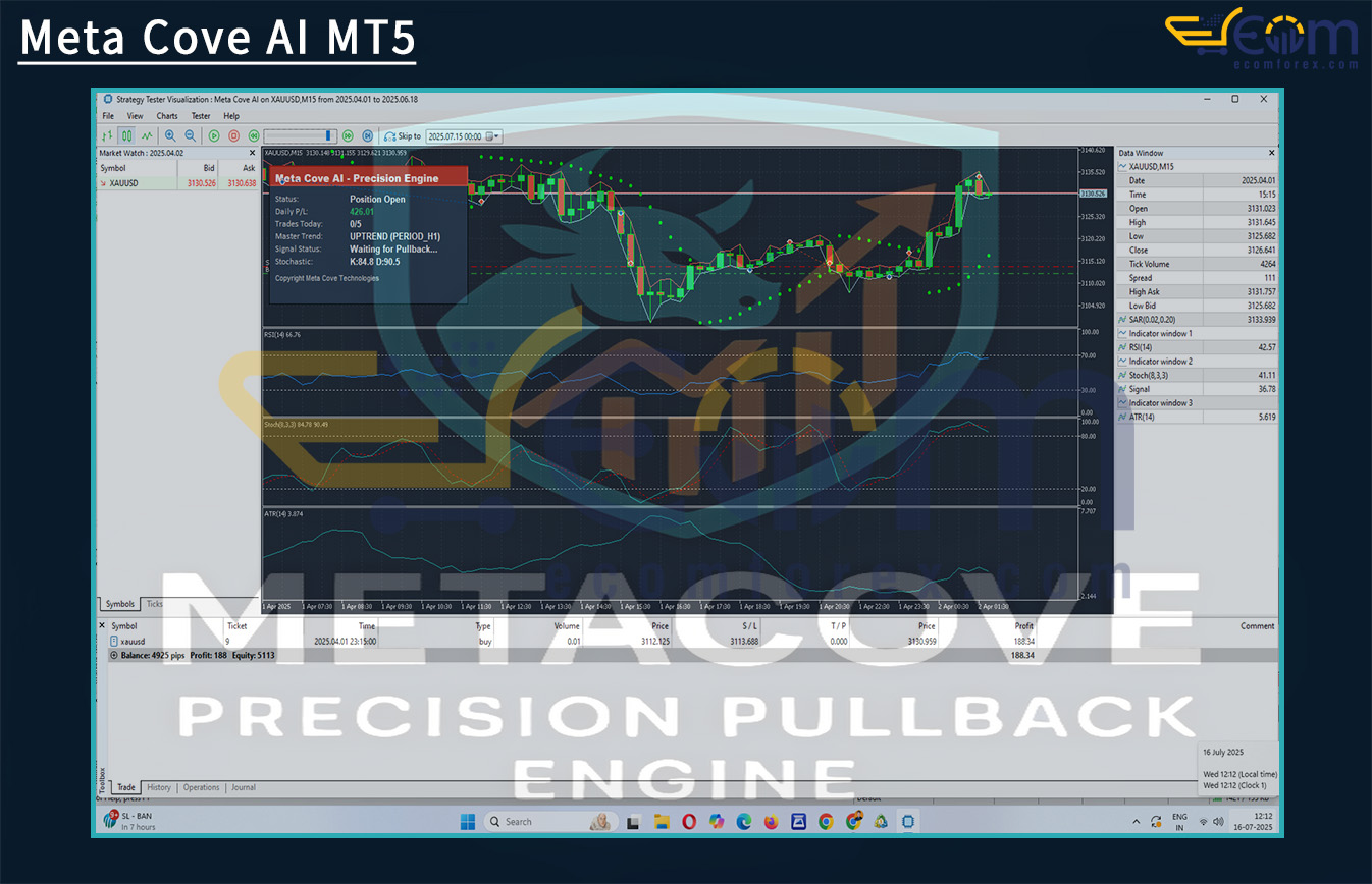 With 20 years in the markets, I’ve seen countless systems chase trends, but few truly understand the rhythm of a pullback — where smart money enters. The Meta Cove AI: Precision Pullback Engine changes that. It’s not just another Expert Advisor; it’s a machine-learning-inspired trading framework designed to identify low-risk, high-probability entries during retracements within strong trends.
