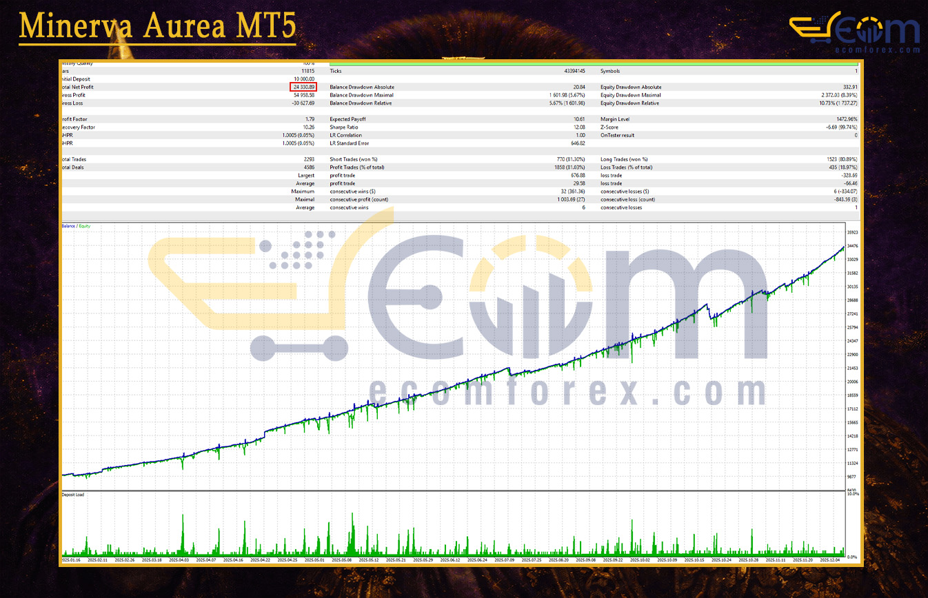 Minerva Aurea MT5 is a professional-grade, fully automated Expert Advisor (EA) specially designed for trading Gold (XAUUSD).