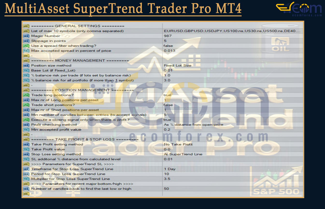 MultiAsset SuperTrend Trader Pro MT4 Input