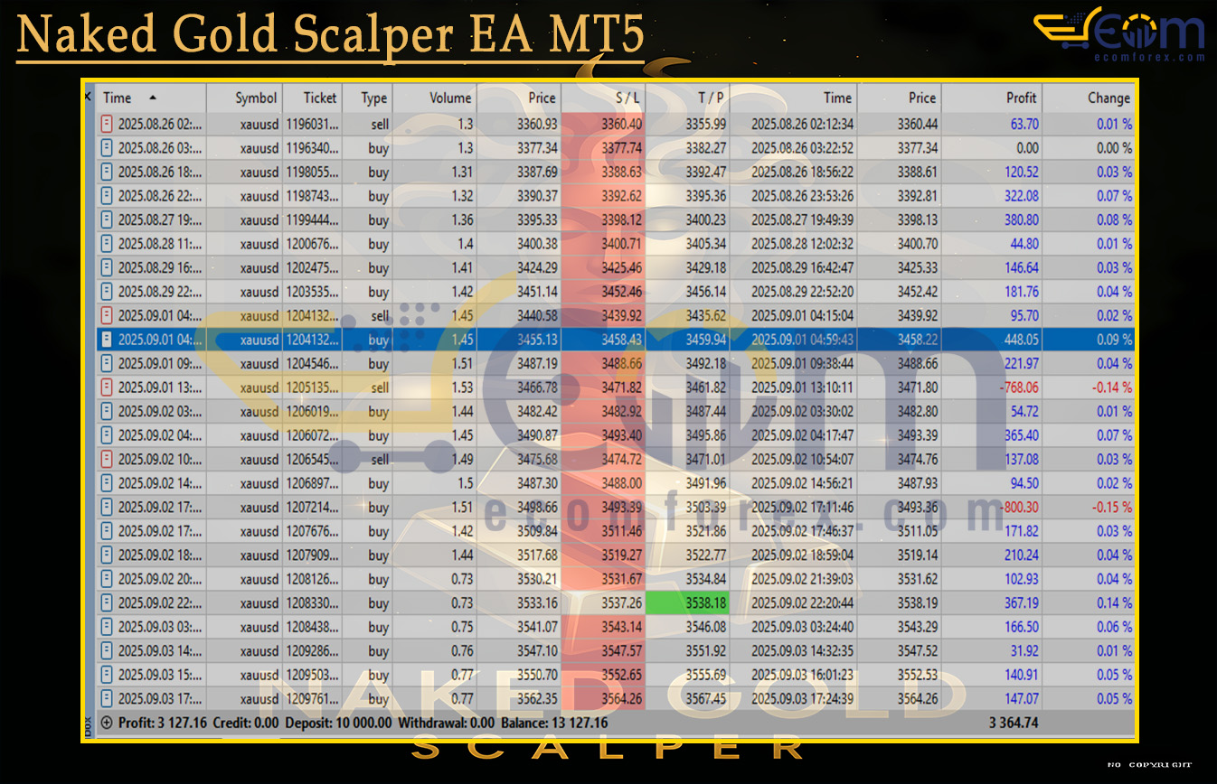Whether you’re targeting steady, low-frequency breakouts or high-speed scalping bursts, Naked Gold Scalper EA adapts intelligently to your style — always maintaining one rule above all: Capital Protection First.