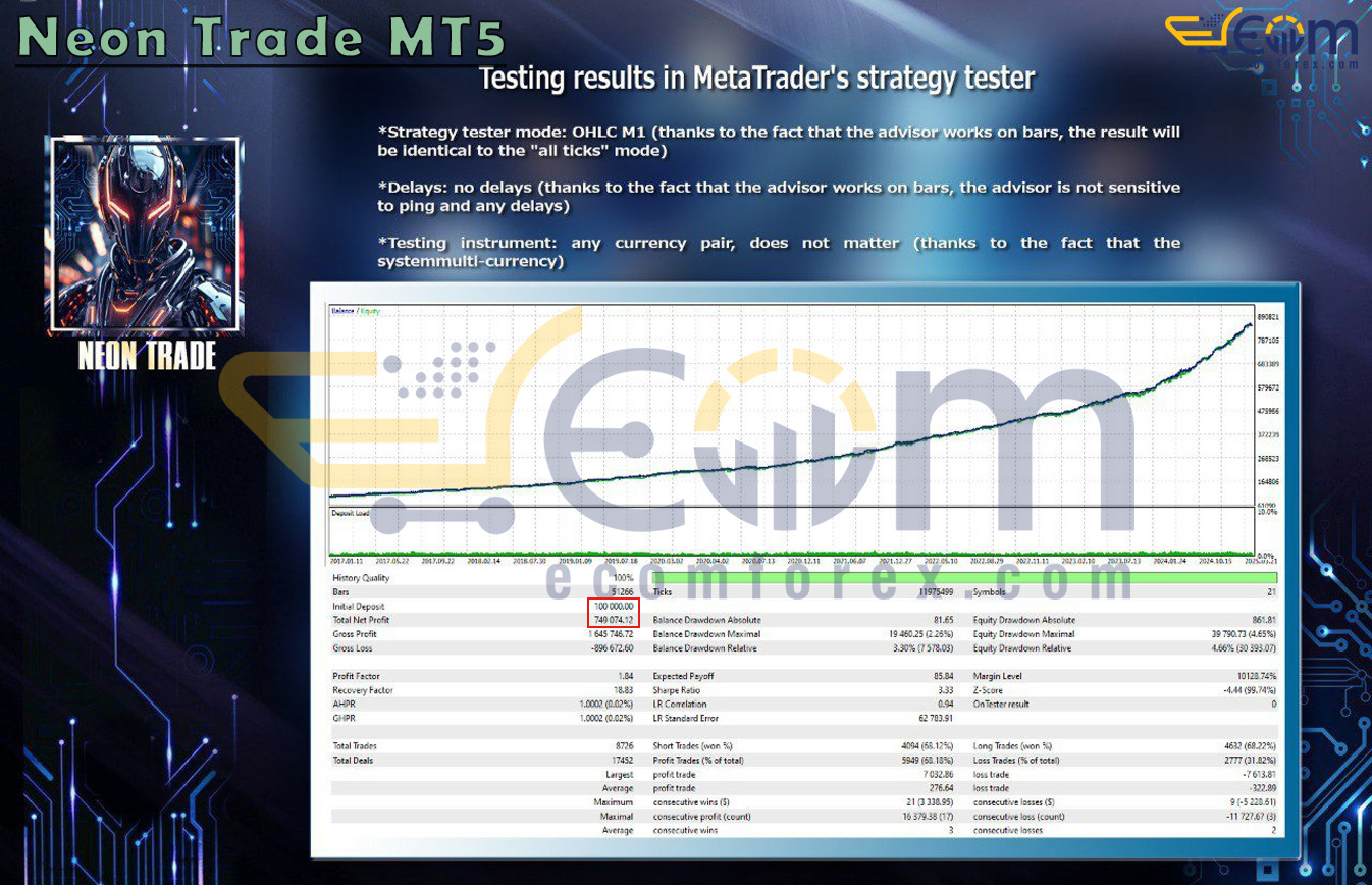 Neon Trade EA has delivered exceptional long-term profitability in Forex trading, proving its consistency and efficiency through extensive backtesting.