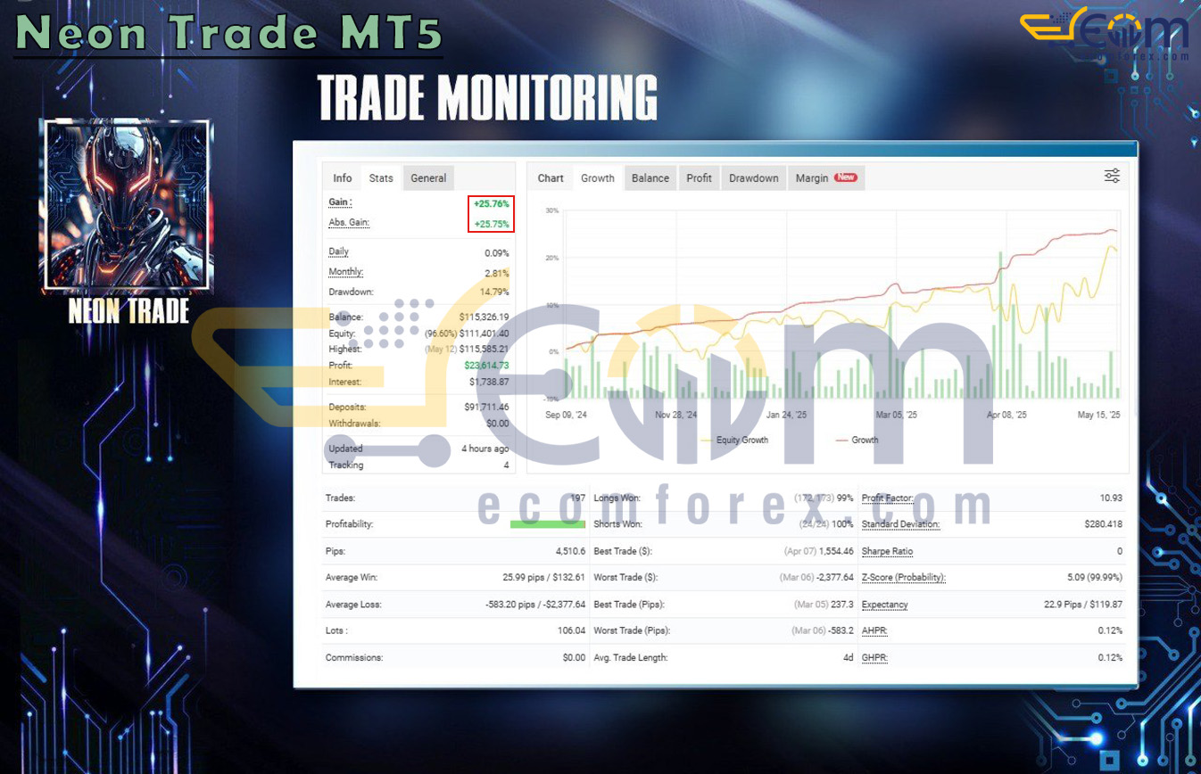 Neon Trade MT5 is a next-generation Expert Advisor (EA) engineered for traders who prioritize capital safety, long-term growth, and maximum trading stability.