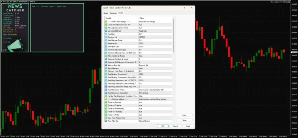 News Catcher Pro EA V3.34 MT4 employs a mean reversion approach utilizing intraday seasonal volatility trends to generate more significant events. This EA executes trades at a specific timeframe just prior to the occurrence of a high-impact event. News Catcher Pro is not designed for continuous trading; it performs optimally with currencies such as GBPUSD, EURUSD, EURGBP, and operates on the M5 timeframe.