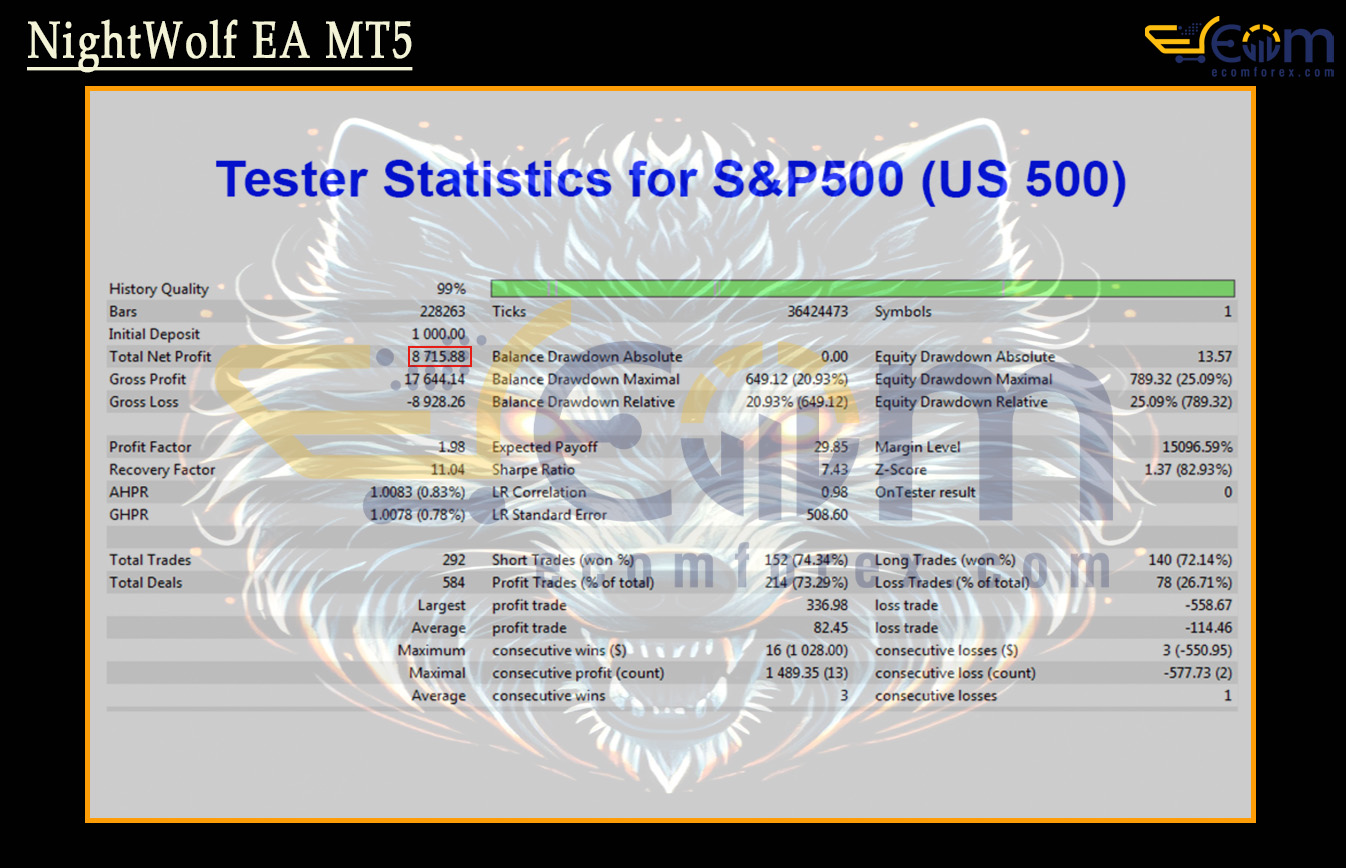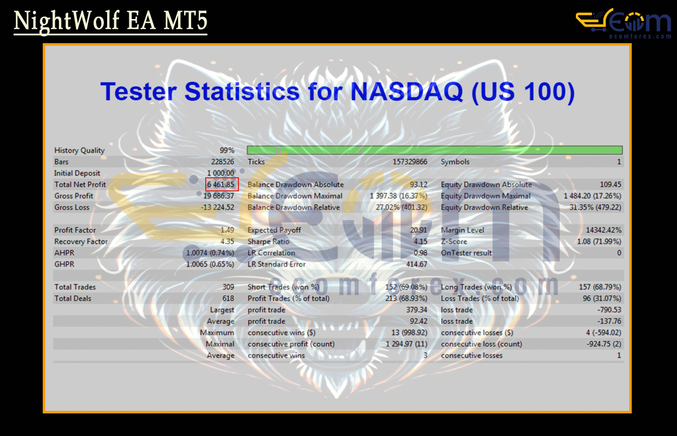 With over 20 years of trading experience in stocks, indices, and algorithmic systems, I’ve evaluated countless predictive models and EAs. NightWolf EA MT5 stands out as a sophisticated, probability-driven automated trader tailored for major US indices — a clean, modern alternative to over-optimized scalpers or grid bots.