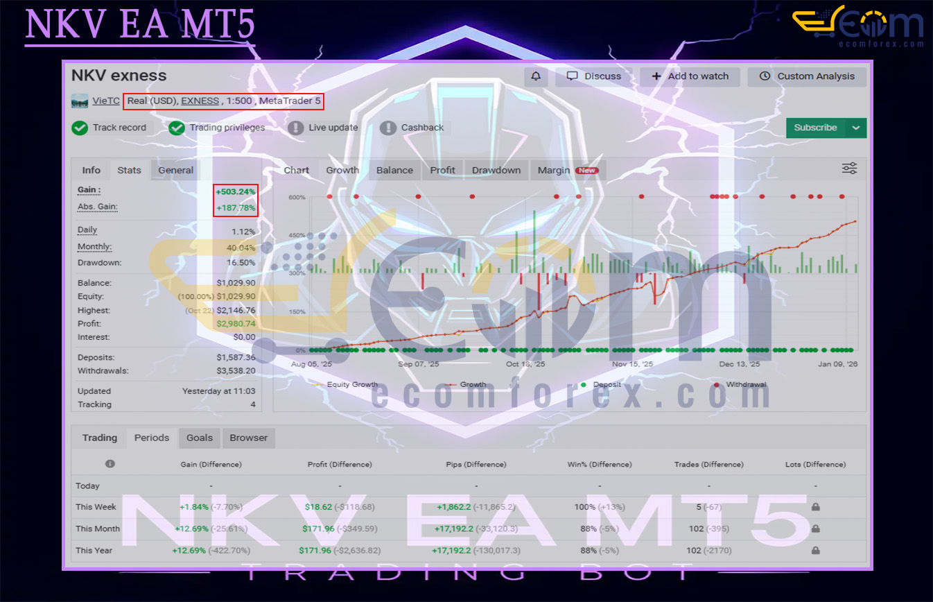 NKV EA MT5 is an advanced and powerful automated trading Expert Advisor (EA). Its trading performance has been verified by MyfxBook.