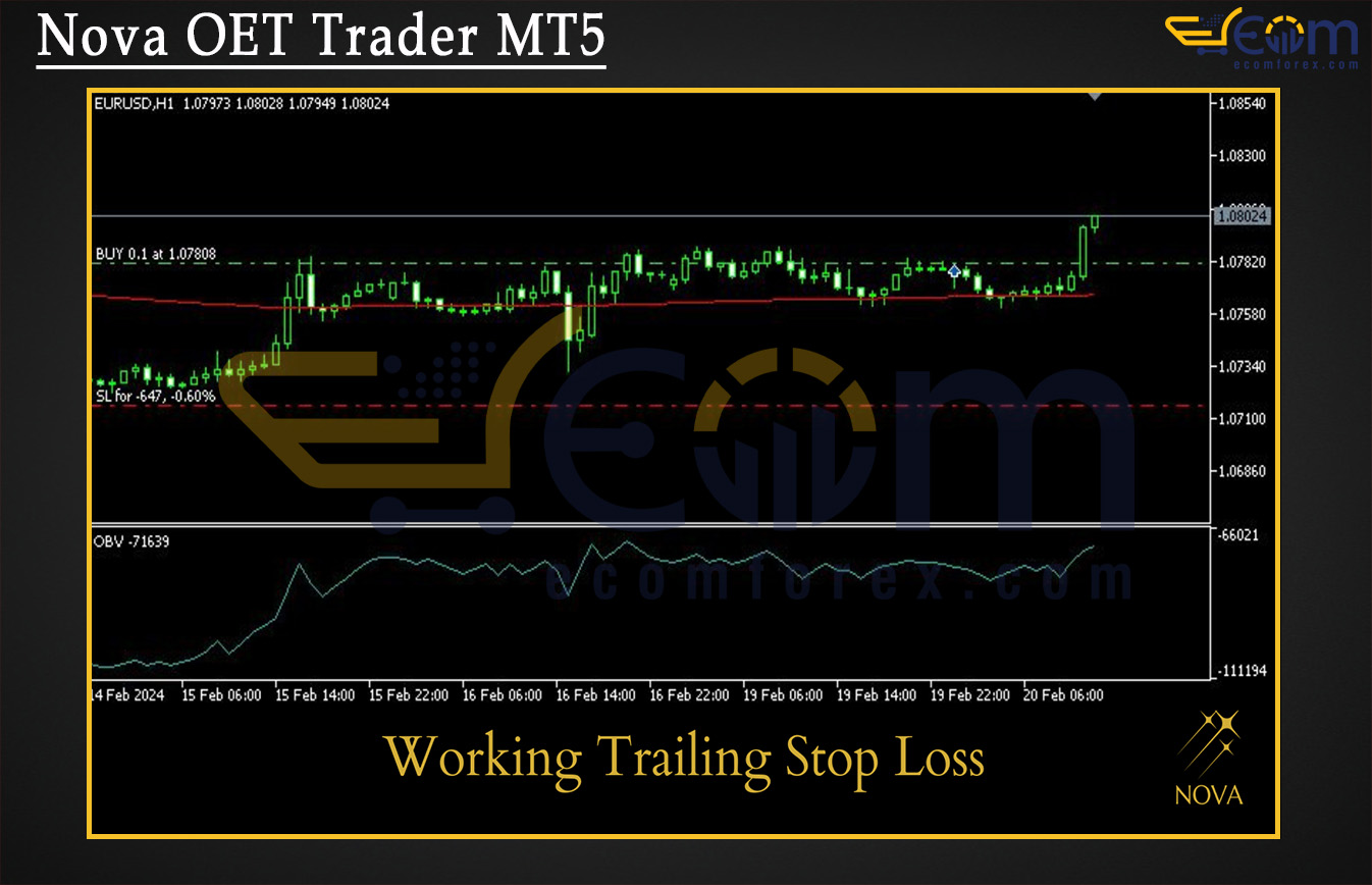 Nova OET Trader MT5 is a professional, fully automated Expert Advisor (EA) for MetaTrader 5 that intelligently combines On-Balance Volume (OBV) and Exponential Moving Average (EMA) into a disciplined, high-quality trading system.