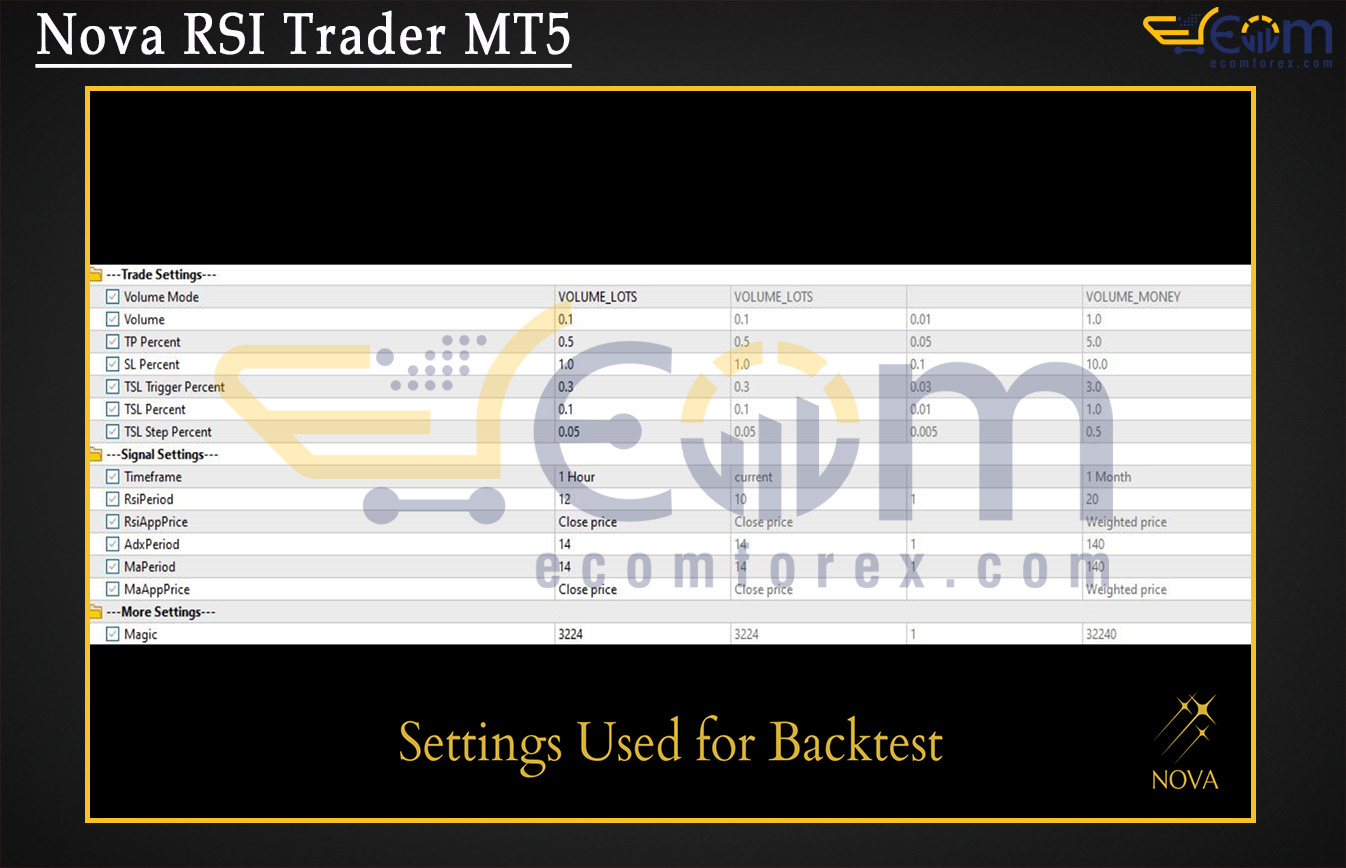 Nova RSI Trader MT5 BacktestNova RSI Trader MT5 Backtests