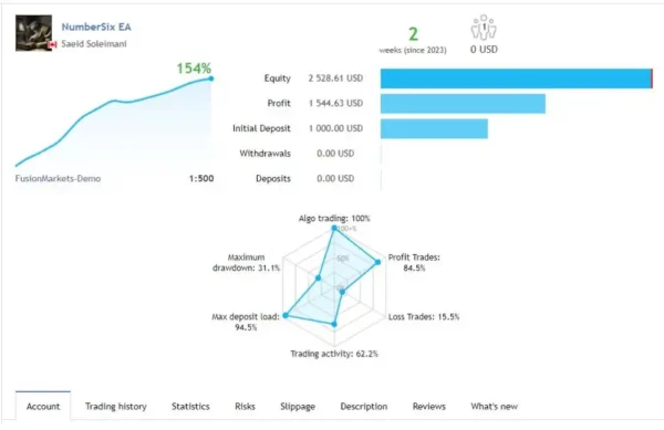 Rapid Trade Executions: Number 6 Scalper EA is engineered for swift trade executions, aligning with the necessities of scalping tactics that depend on quick market entries and exits.