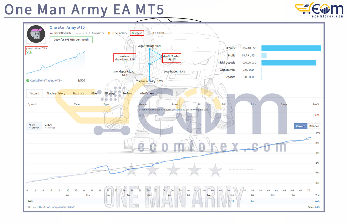 With over 20 years of professional trading experience, I can confidently say that One Man Army EA stands out as one of the few systems that truly balance safety, discipline, and real-world performance.
