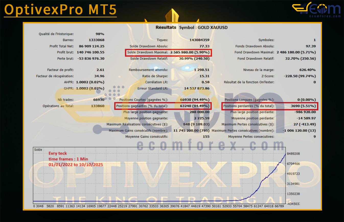 OptivexPro MT5 has demonstrated extraordinary profitability and precision in its verified backtest, confirming its capability to deliver sustained long-term growth on the XAUUSD (Gold) pair with disciplined risk control.