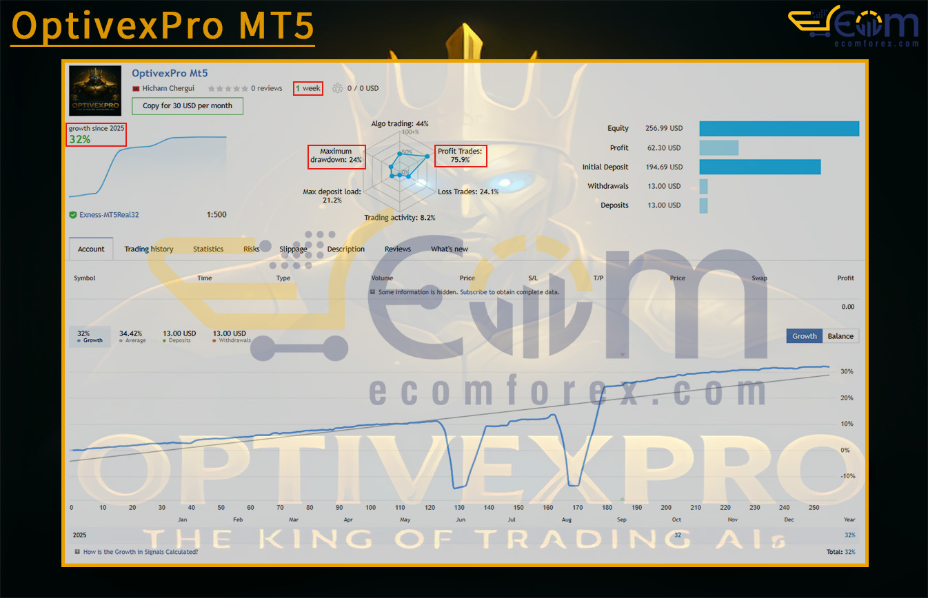 Developed through years of professional research and market testing, OptivexPro MT5 is built for traders who demand real, consistent daily growth instead of random, luck-based results.