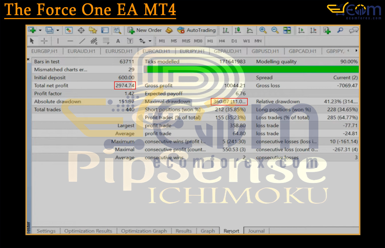 PipSense Ichimoku EA MT4 is a fully automated Expert Advisor (EA) built on a trend-following trading framework, leveraging the power of the Ichimoku Kinko Hyo indicator with proprietary settings.