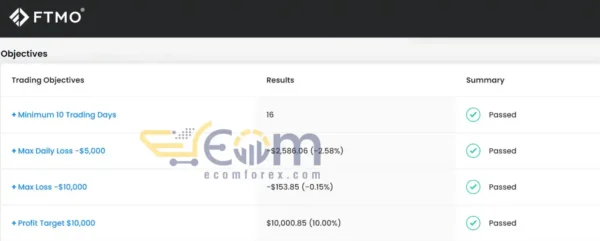 The FTMO Challenge (ID: 2090890837) was successfully completed, demonstrating outstanding trading performance. Starting on October 22, 2021, and ending on November 20, 2021, the challenge involved a $100,000 account on the MT4 platform. The trading strategy delivered a remarkable profit of $10,000, achieving the challenge’s profit target while maintaining a steady and consistent growth curve. The trading approach showcased effective risk management, keeping the maximum loss within acceptable limits, and highlighting the trader’s proficiency and disciplined trading strategy.