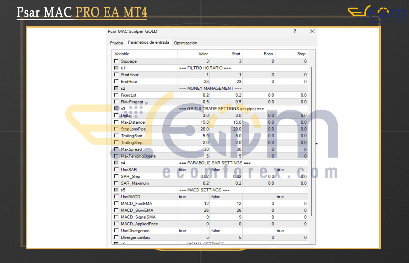 With over 20 years of experience trading gold, I rate Psar MAC PRO EA MT4 as a clean, precise, and professional Expert Advisor (EA) specifically optimized for XAU/USD on the M15 timeframe.