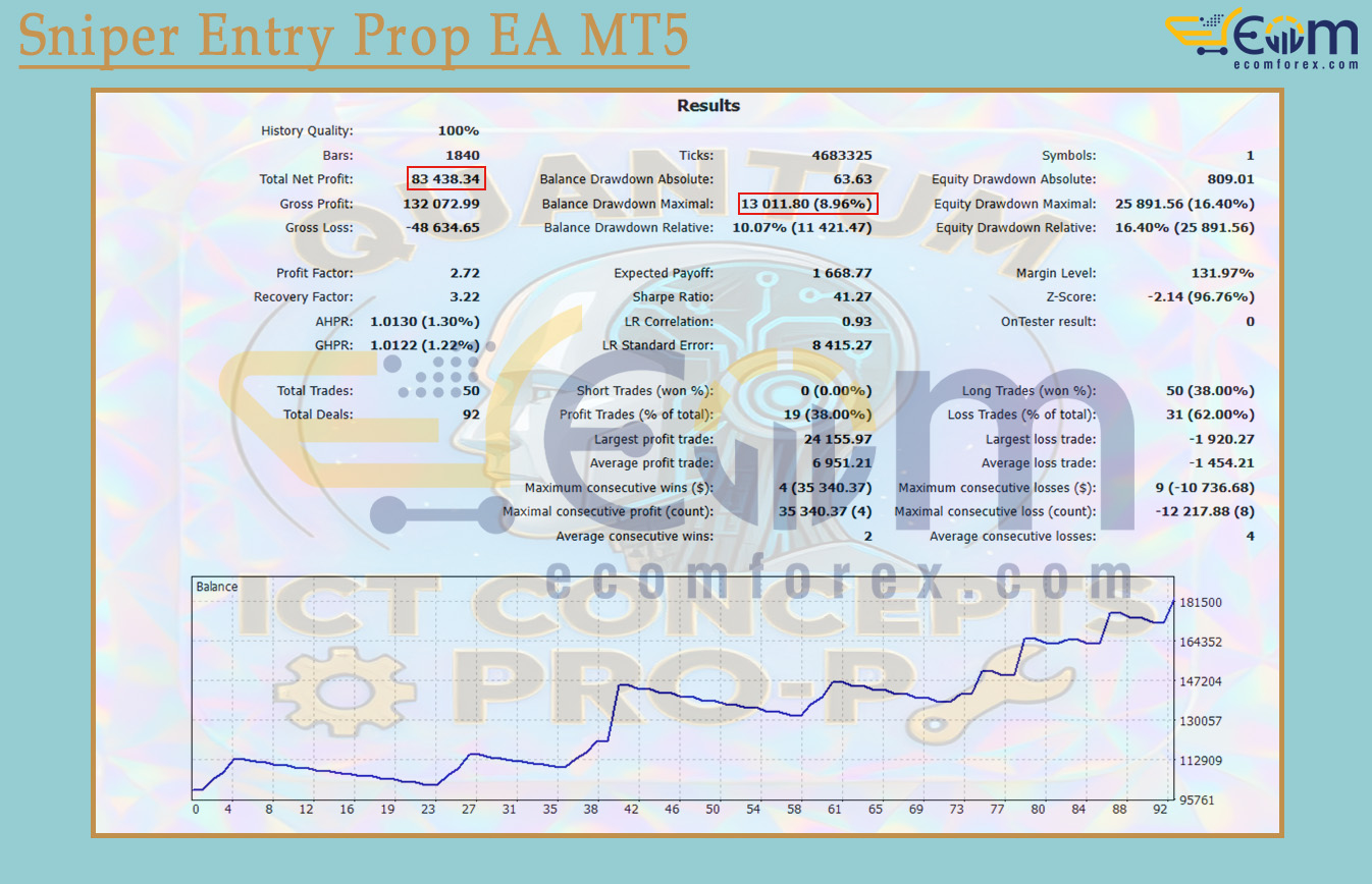 Quantum ICT Concepts EA MT5 delivered strong long-term profitability over this high-quality backtest, demonstrating a clear institutional-style growth profile driven by selective, high-impact trades.