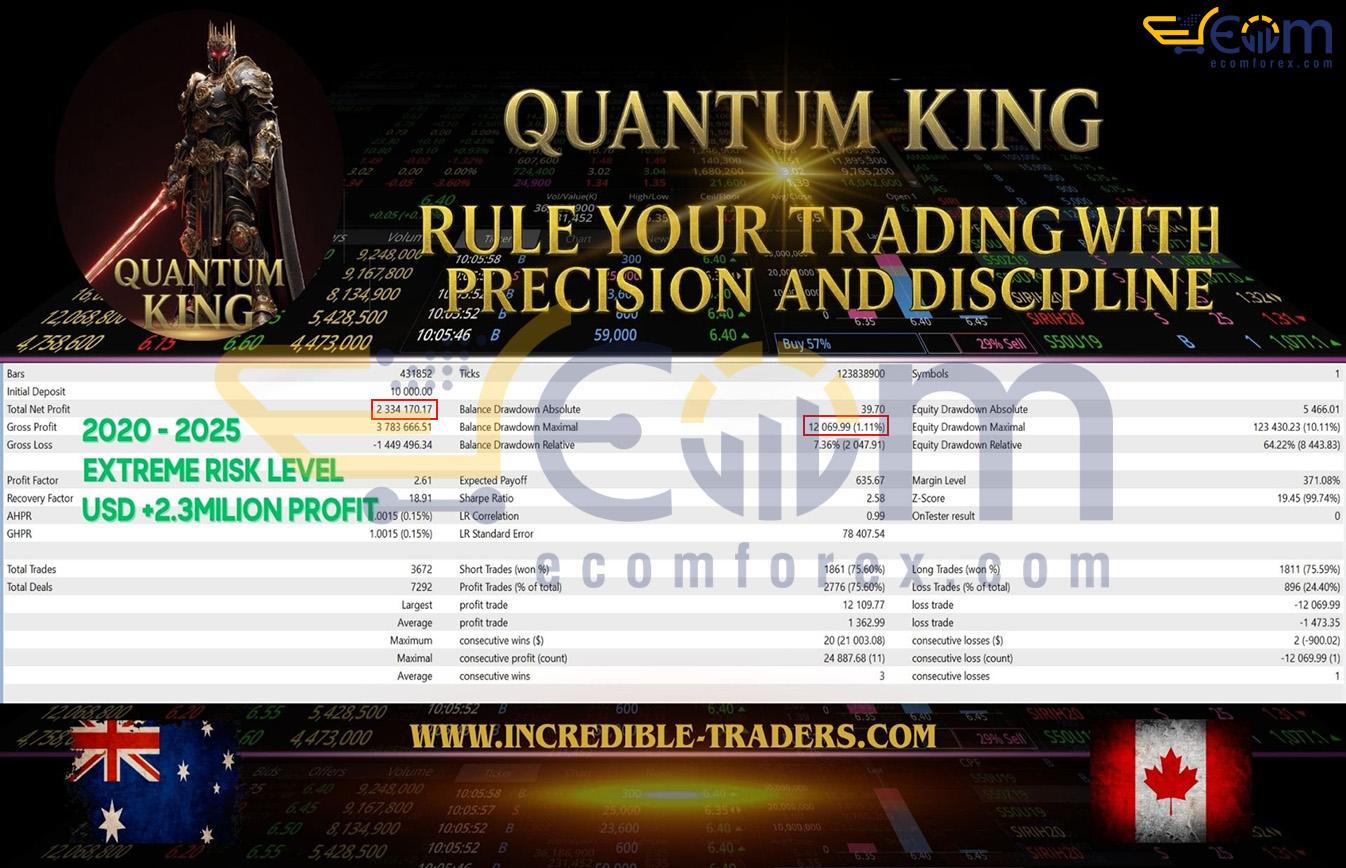 Quantum King MT4 is a fully automated trading system engineered specifically for the AUDCAD pair. Its strategy has been proven through verified live accounts, demonstrating consistent real-world profitability and stable performance.