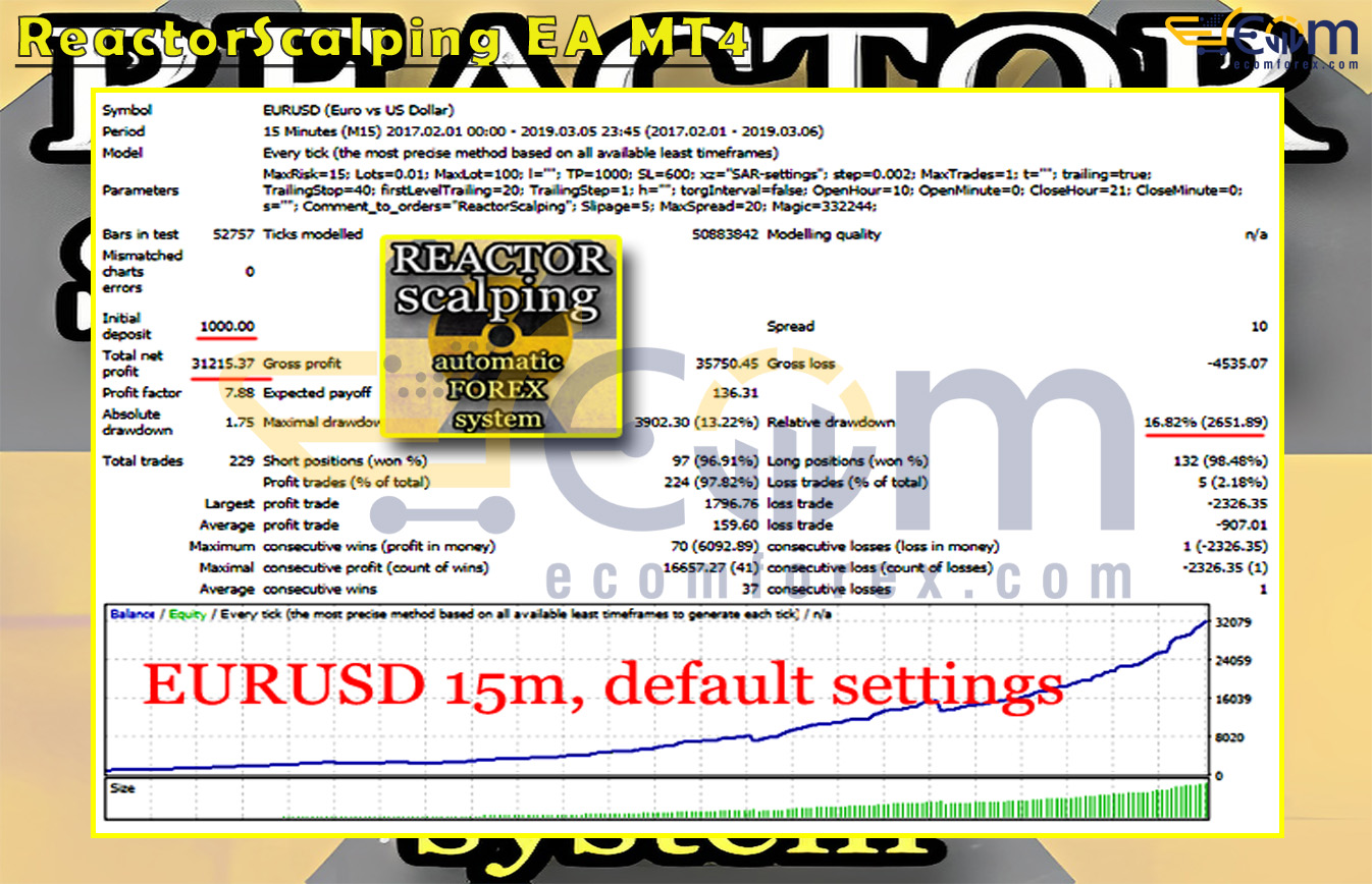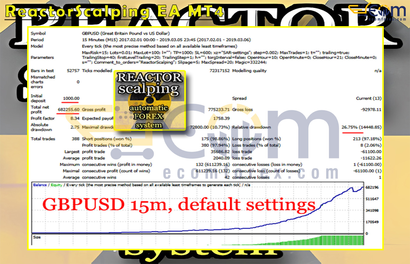 ReactorScalping EA MT4 is a fully automated trading system (Expert Advisor) designed to completely eliminate emotional bias and manual intervention from trading, allowing traders to achieve optimal performance in the Forex market.