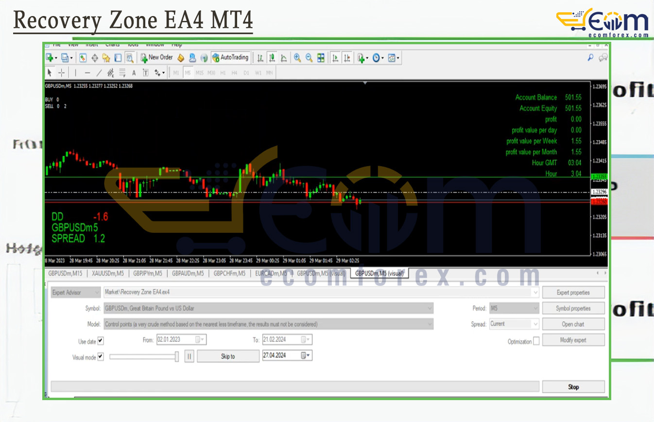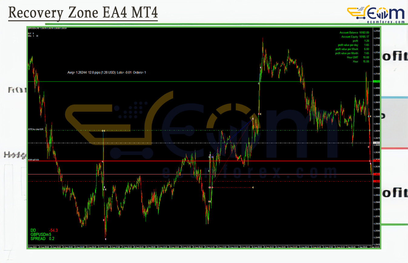 Recovery Zone EA4 MT4 is a powerful hedging recovery Expert Advisor (EA) designed to turn losing trades into profitable outcomes using a structured zone recovery (surefire hedging) strategy. It opens an initial buy or sell position (often counter-trend), then places opposite pending orders in multiples at defined recovery zones to hedge and recover drawdown when price moves against the first trade.