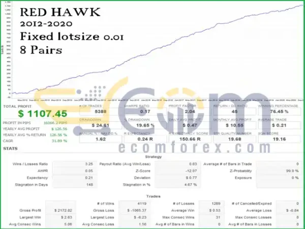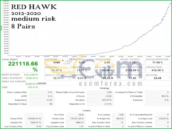 Red Hawk serves as an Expert Advisor (EA) for trading currency pairs and is compatible with the Metatrader 4 (MT4) platform. This EA is fine-tuned for trading currency pairs like EURUSD, GBPUSD, USDCHF, EURCHF, EURGBP, AUCAD, AUDJPY, EURAUD, and USDCAD. Its lucrative performance has been validated by Myfxbook and FXBlue.