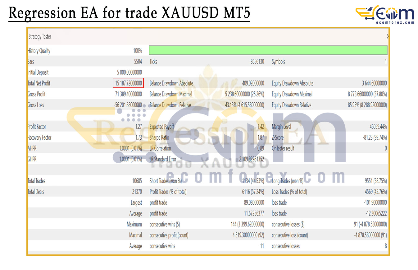 Regression EA for trade XAUUSD MT5 Backtests