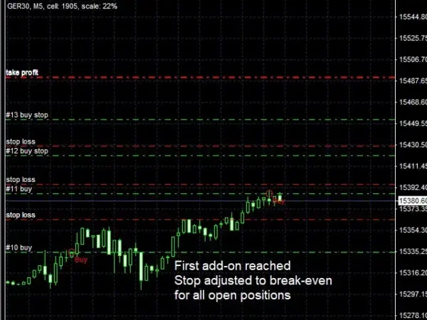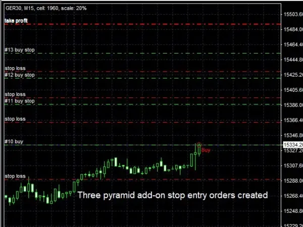 Riskless Pyramid EA MT4 is an efficient and no-risk instrument. It offers a strong approach to enhance trading returns without any risk involved. Trades will have their stop loss and take profit strategically modified to ensure a no-risk stance for the overall transaction. Reaching the profit goal without triggering the stop loss will result in a compounded total profit.