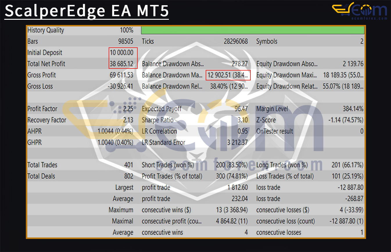 ScalperEdge EA has delivered impressive profitability and high trading precision during its backtesting phase, showcasing its ability to maintain stable growth and disciplined risk control even in volatile market conditions.