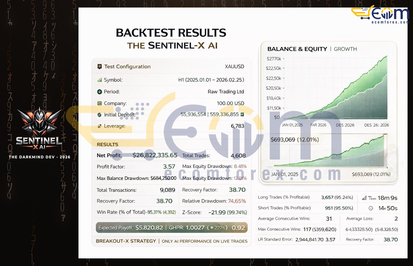 Sentinel X Gold EA with AI Analysis MT5 Achieves Extraordinary 24-Month Backtest on XAUUSD