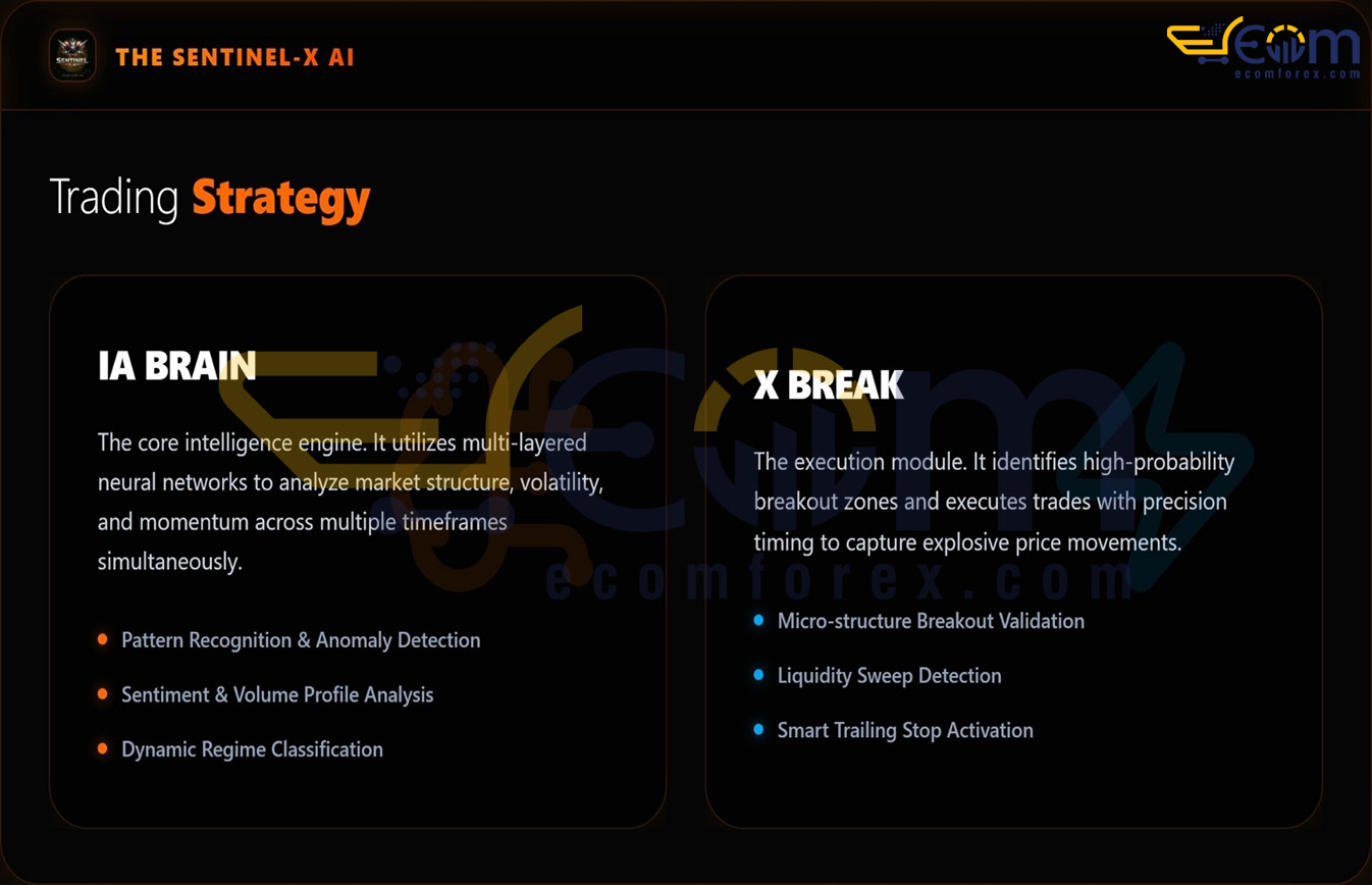Sentinel X Gold EA employs a sophisticated Hybrid Breakout + AI Validation strategy: