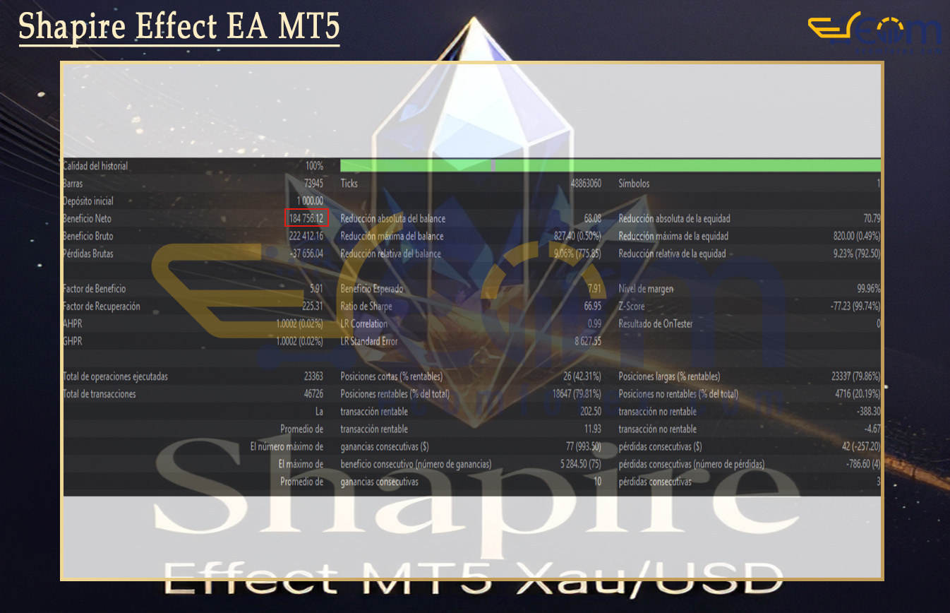 Shapire Effect EA MT5 is built on the principle of “AI Pattern Recognition + Strong Momentum Confirmation.”