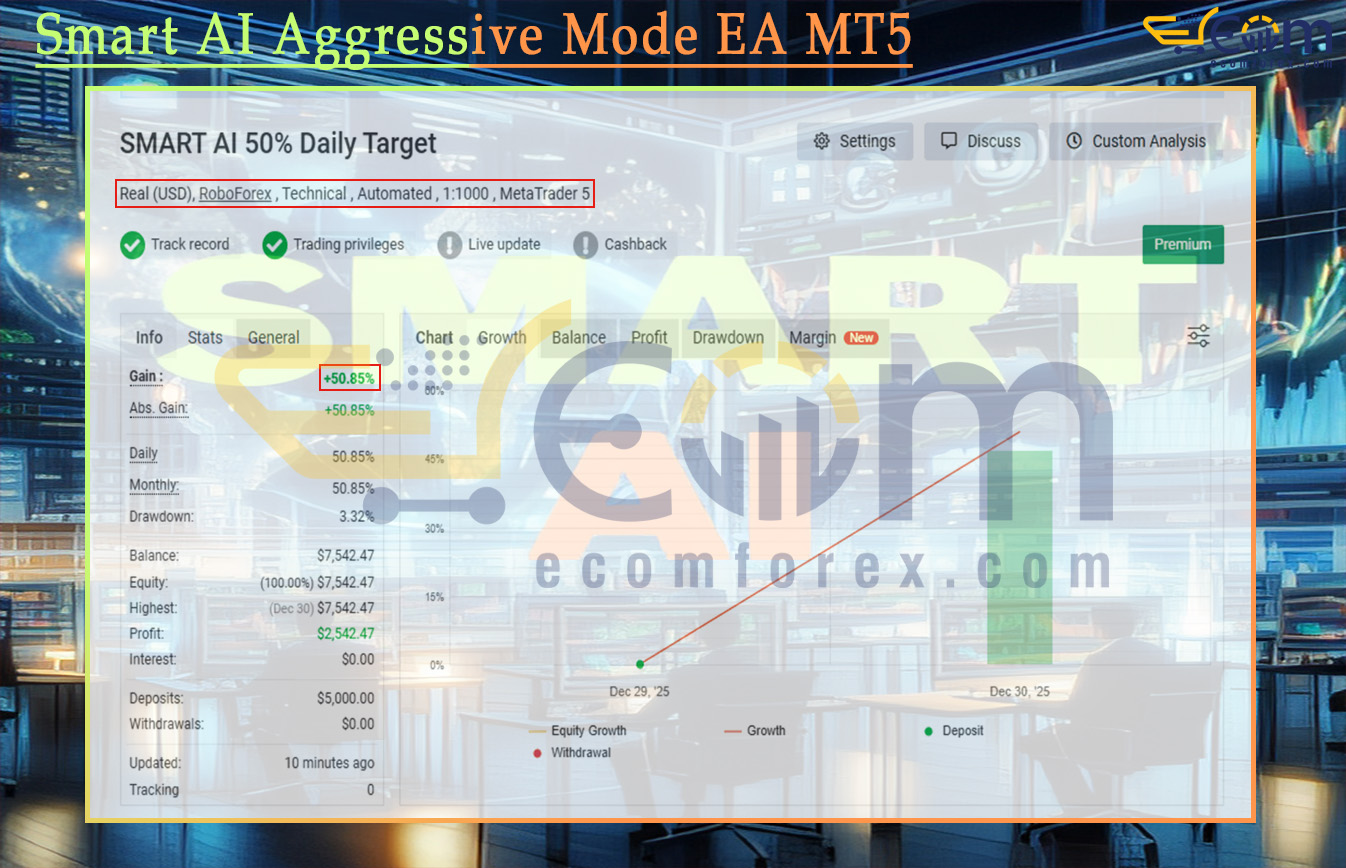 Smart AI Aggressive Mode EA MT5 Live Result MyfxBook