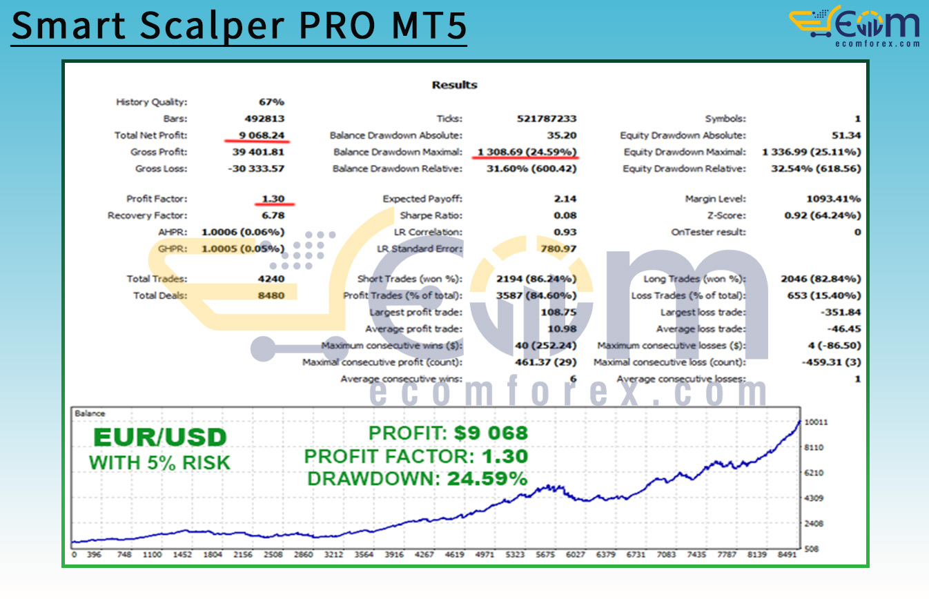 Smart Scalper PRO has shown remarkable precision and stability in its backtesting results, highlighting its ability to extract profits from short-term market impulses while maintaining strict risk management.