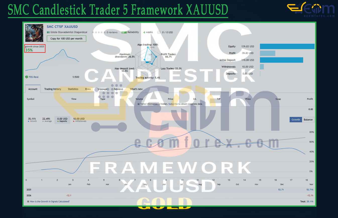 SMC Candlestick Trader 5 Framework XAUUSD has delivered verified live trading results on a real FBS account, fully tracked and publicly shared, showing consistent performance on gold (XAUUSD) since early 2025.