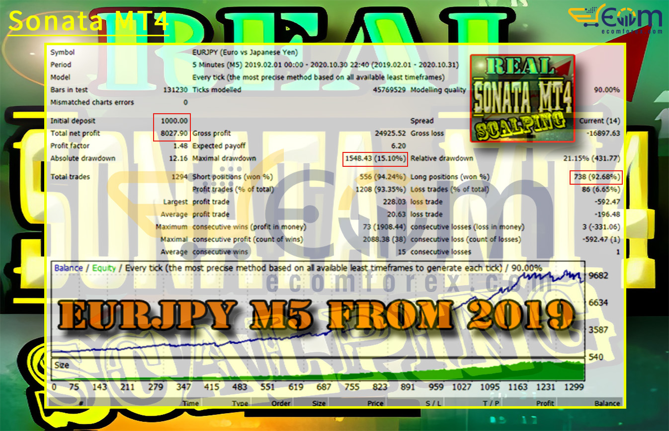 The Sonata EA MT4 has demonstrated reliable profitability in backtesting, showcasing its ability to deliver consistent returns with disciplined trade execution. Over the 1.5-year testing period (2019–2020, EURJPY, M5 timeframe), the system proved its effectiveness by generating solid profits while maintaining controlled drawdowns, making it a strong choice for traders seeking stability and growth.